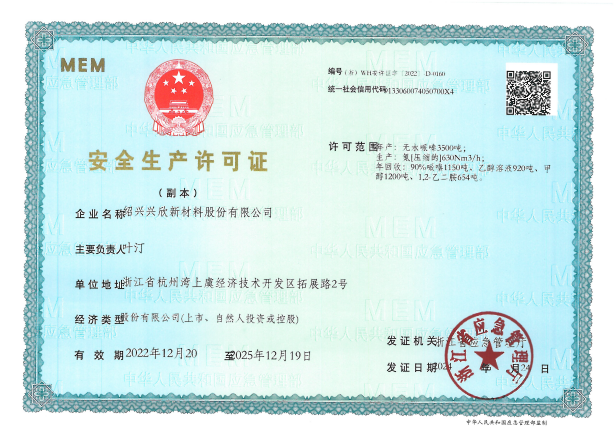 紹興興欣新材料股份有限公司成立于2002年06月27日,占地面積122畝,位于杭州灣上虞經(jīng)濟(jì)技術(shù)開發(fā)區(qū)拓展路2號(hào),現(xiàn)有職工200余人,專業(yè)技術(shù)人員50余人;博士、碩士研究生30余人組成的一支知識(shí)型、專業(yè)化的技術(shù)科研團(tuán)隊(duì)。公司面向全球市場(chǎng),專業(yè)開發(fā)電子化學(xué)品、環(huán)保化學(xué)品、醫(yī)藥中間體、高分子材料等先進(jìn)新材料重點(diǎn)領(lǐng)域的省級(jí)科技型企業(yè);建有浙江上虞、安徽東至兩個(gè)生產(chǎn)基地。目前為“國家高新技術(shù)企業(yè)”、浙江省“隱形冠軍”企業(yè)、浙江省專精特新中小企業(yè);建有“省級(jí)”研究開發(fā)中心,共建天津大學(xué)浙江紹興研究院電子化學(xué)品研發(fā)中心。